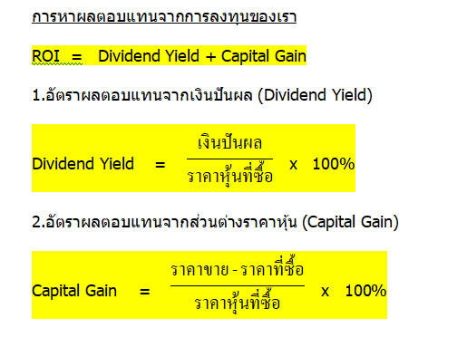 อัตราผลตอบแทน ROI = Capital Gain + Dividend Yield