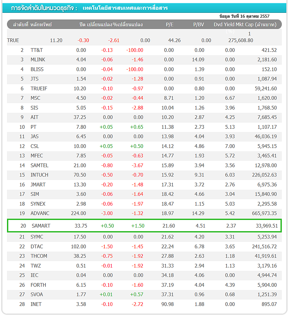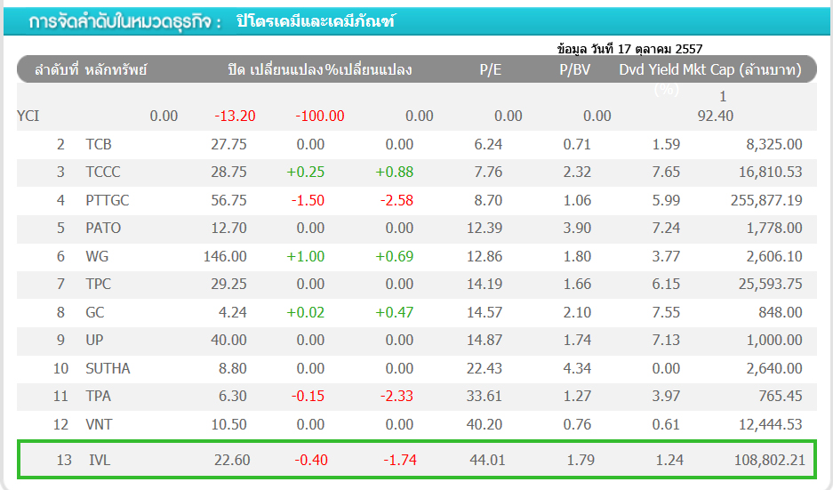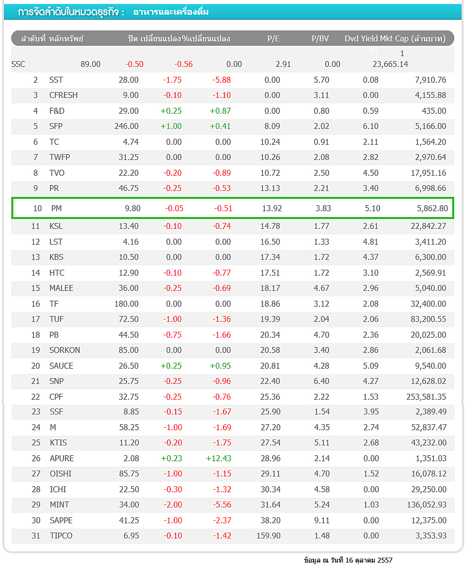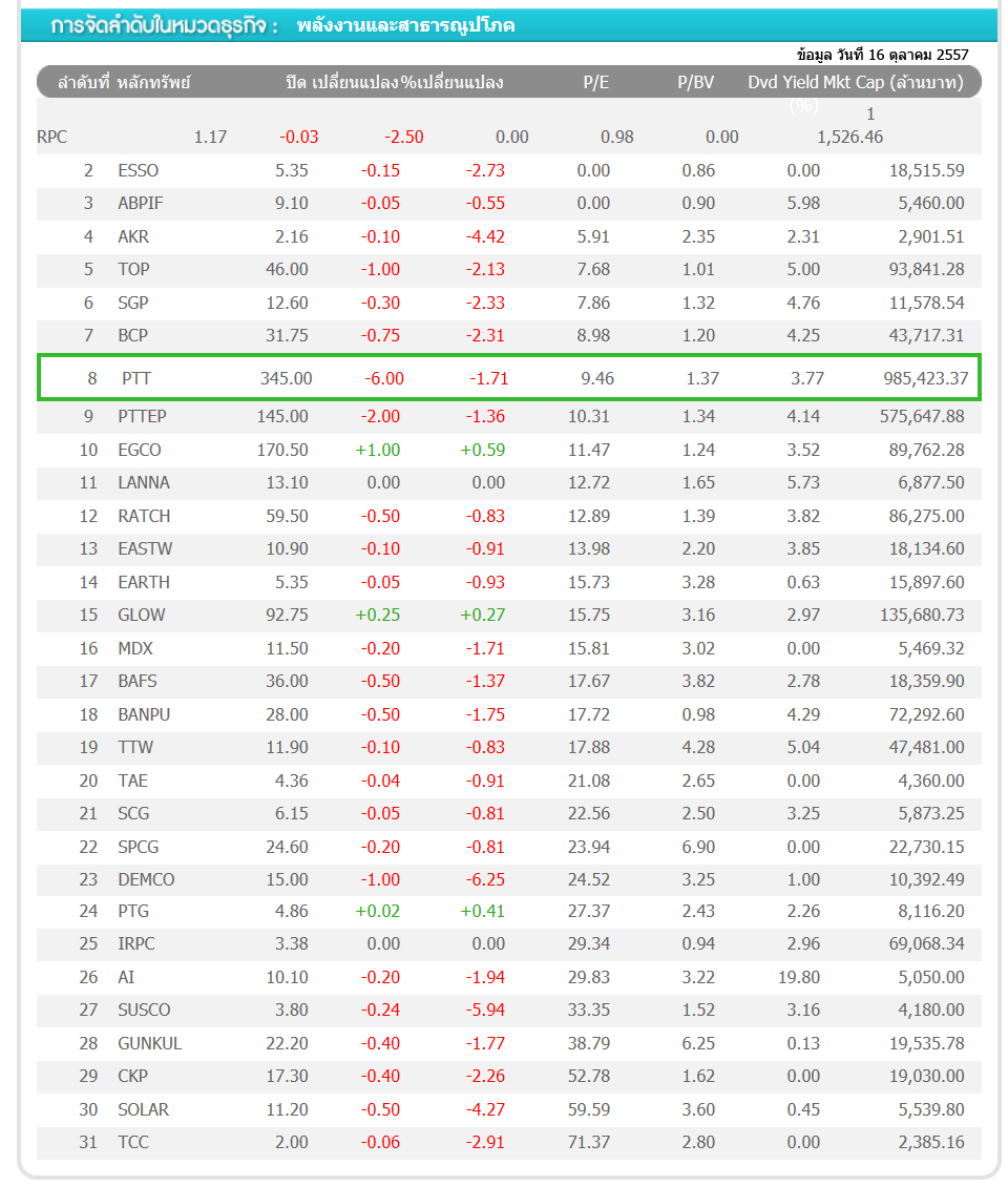 RE : รวมรายชื่อหุ้น ในกลุ่มอุตสาหกรรมต่าง ๆ ทั้งหมด เรียงตามค่า P/E โพสต์เมื่อ: วันเสาร์ 18 ตุลาคม 2557 14:42 น. ![]() . |