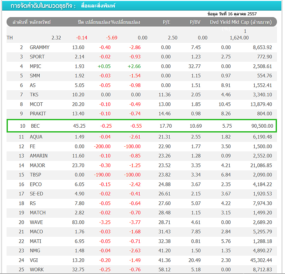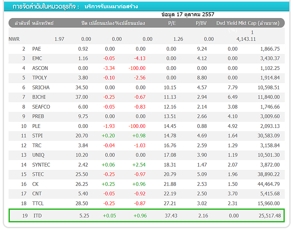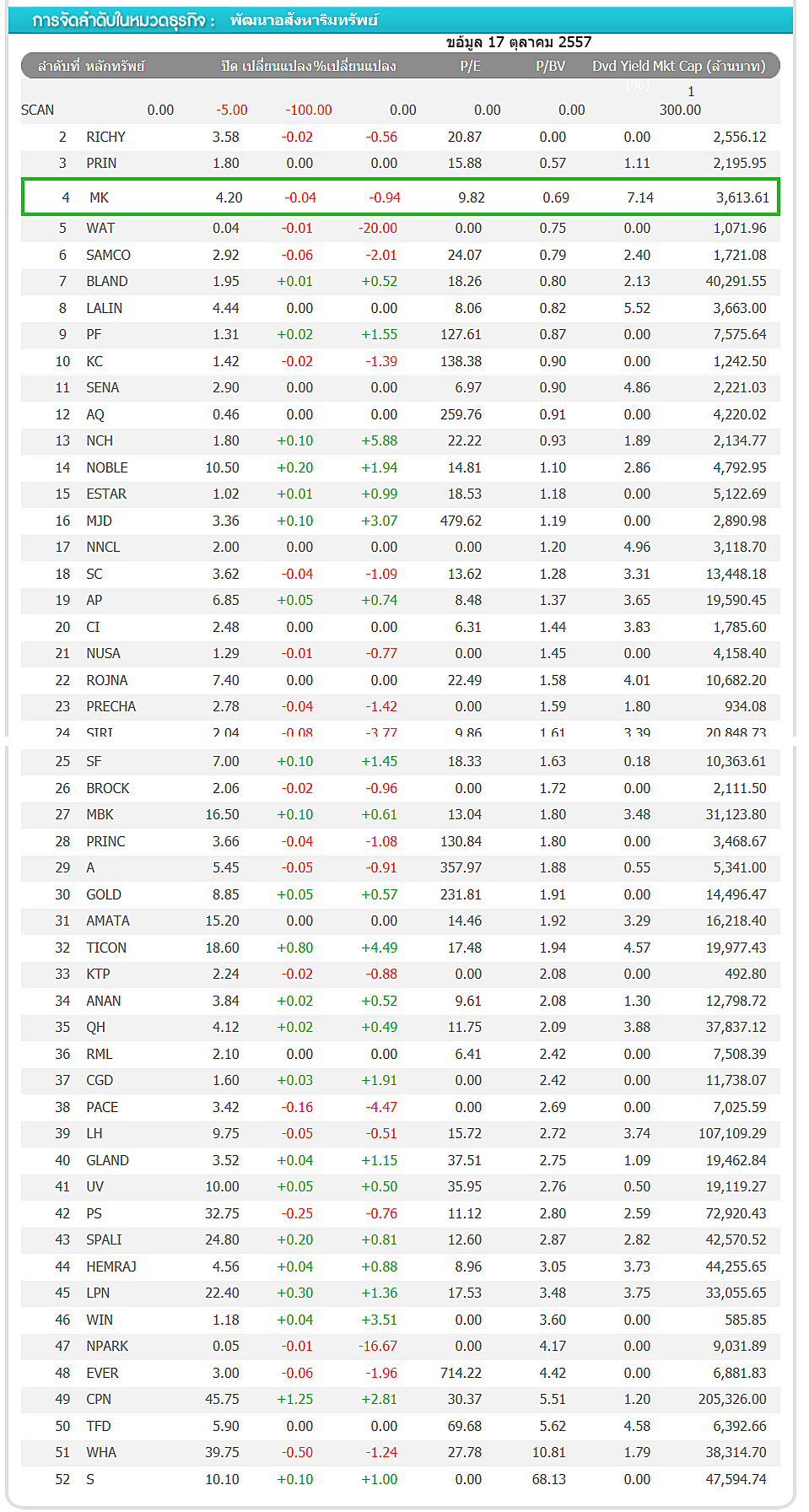 RE : รวมรายชื่อหุ้น ในกลุ่มอุตสาหกรรมต่าง ๆ ทั้งหมด เรียงตามค่า P/E โพสต์เมื่อ: วันเสาร์ 18 ตุลาคม 2557 14:42 น. ![]() . |