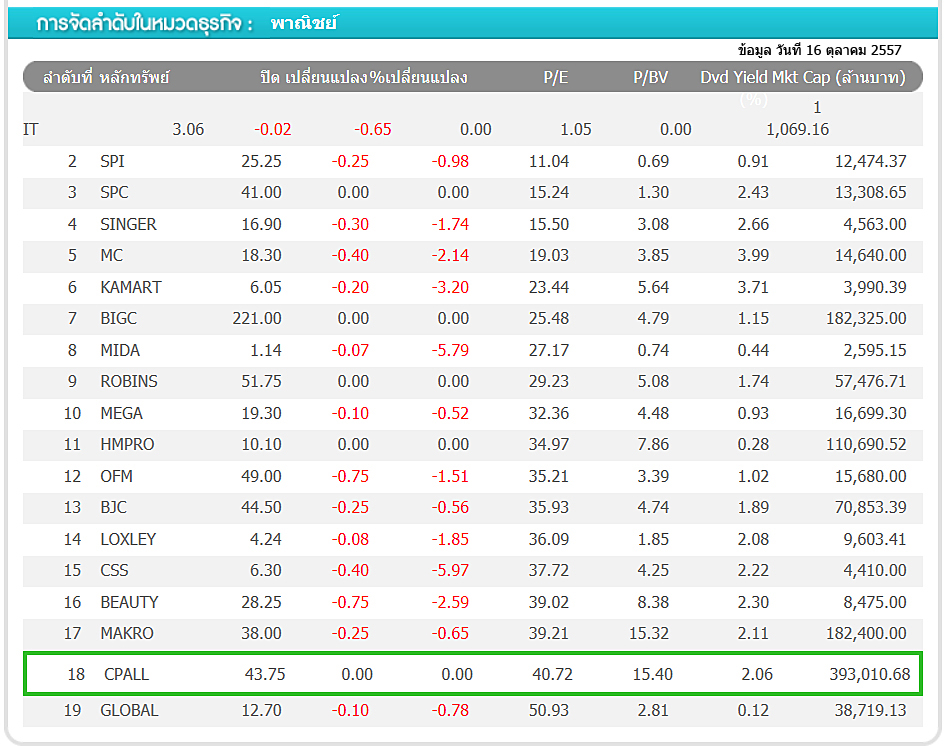 RE : รวมรายชื่อหุ้น ในกลุ่มอุตสาหกรรมต่าง ๆ ทั้งหมด เรียงตามค่า P/E โพสต์เมื่อ: วันเสาร์ 18 ตุลาคม 2557 14:36 น. ![]() . |