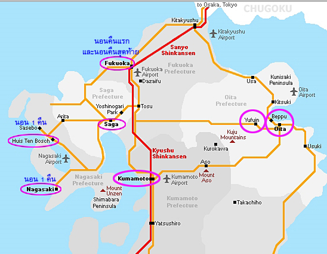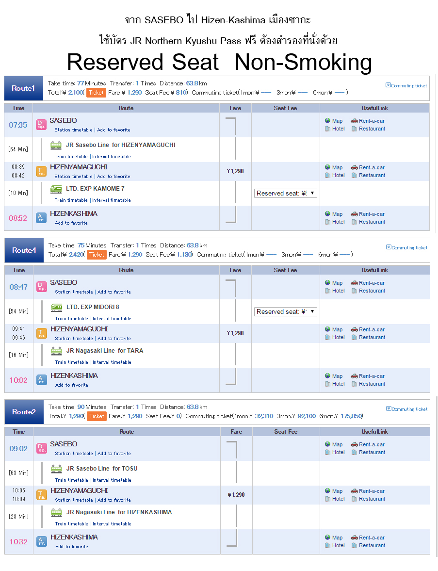 - ใช้บัตร JR Northern Kyushu Pass 5 วัน 10,00 เยน