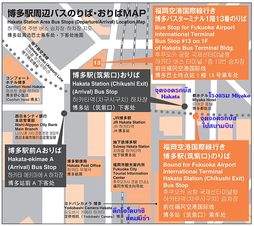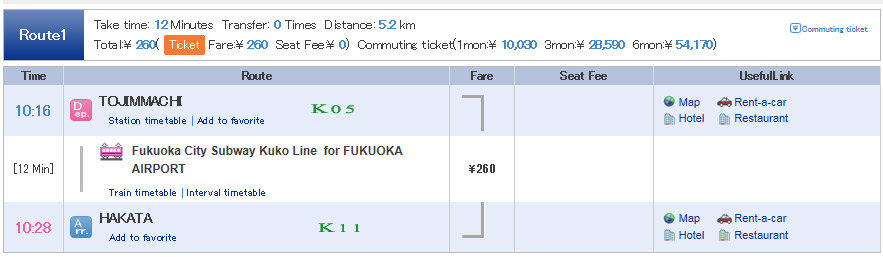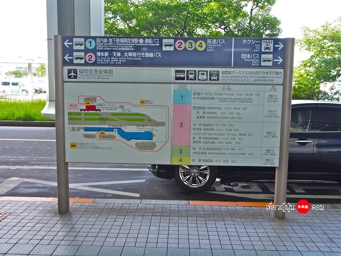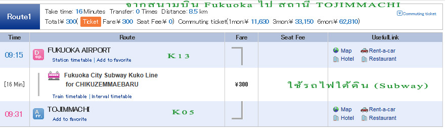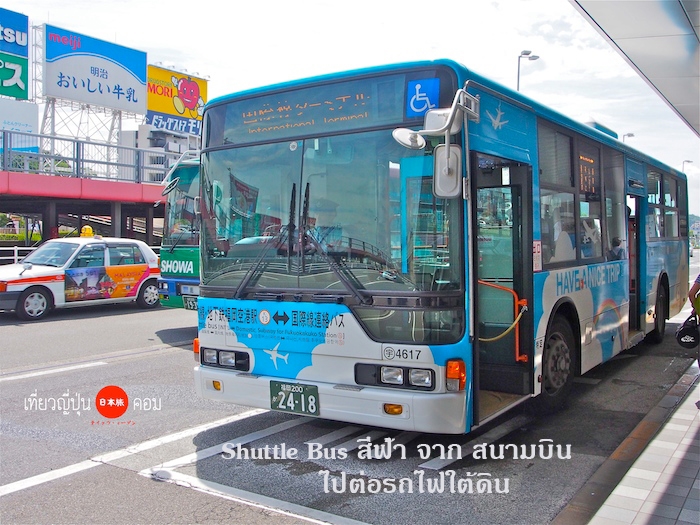 รถจะไปส่งที่สถานี Hakata (20นาที 260 เยน 78 บาท) และสถานี Tenjin (วิธีนั่งเหมือนนั่งรถเมล์ญี่ปุ่นทั่วไป)