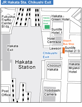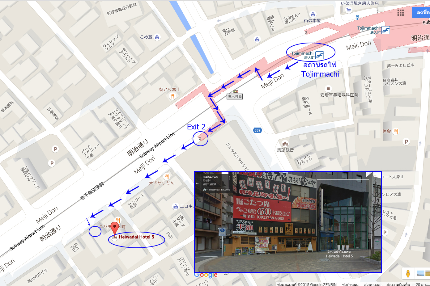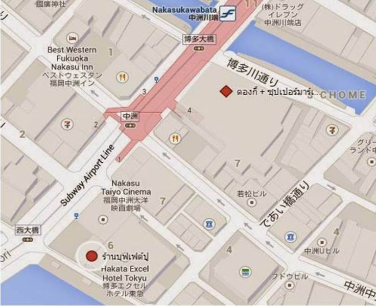 การเดินทาง: รถไฟใต้ดิน สถานี Nakasu-kawabata ทางออก 5