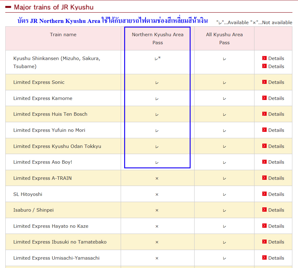 JR Northern Kyushu Area ใช้กับรถไฟสายใดบ้าง
