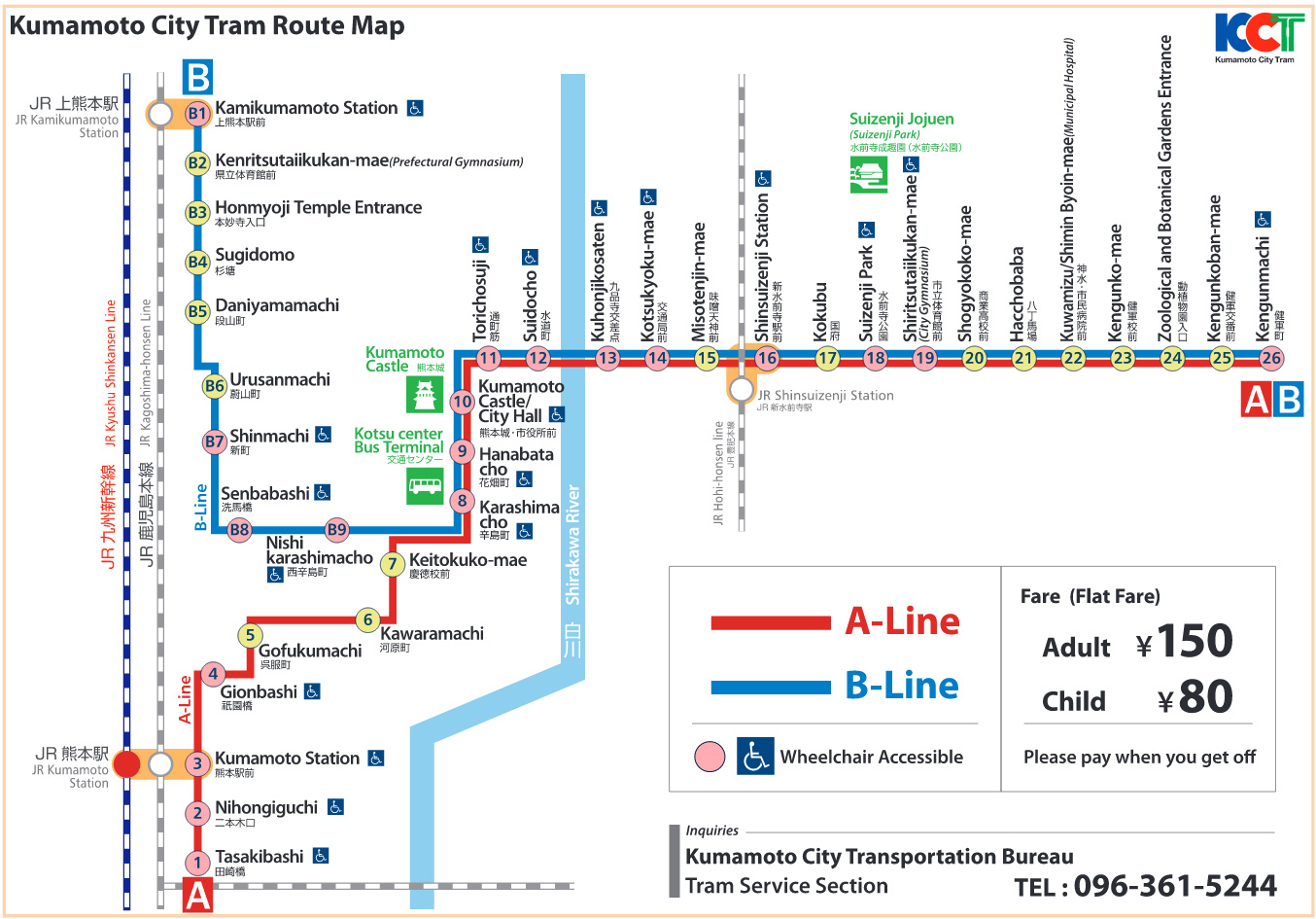 - ค่ารถ Tram คุมาโมโต้ One Day Pass 300 เยน 90 บาท
