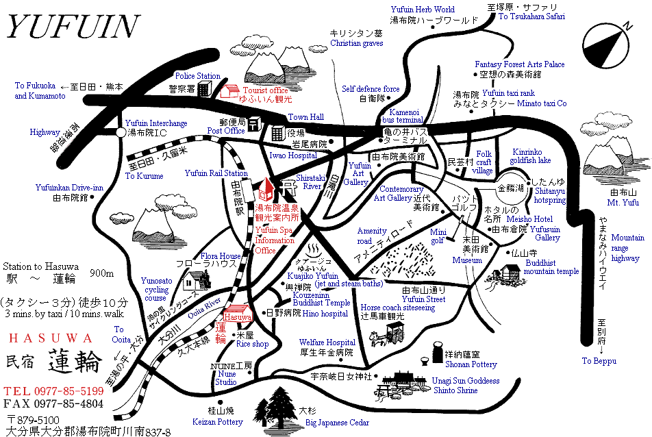 การเดินทาง : Taxi จาก JR Yufuin 10 นาที