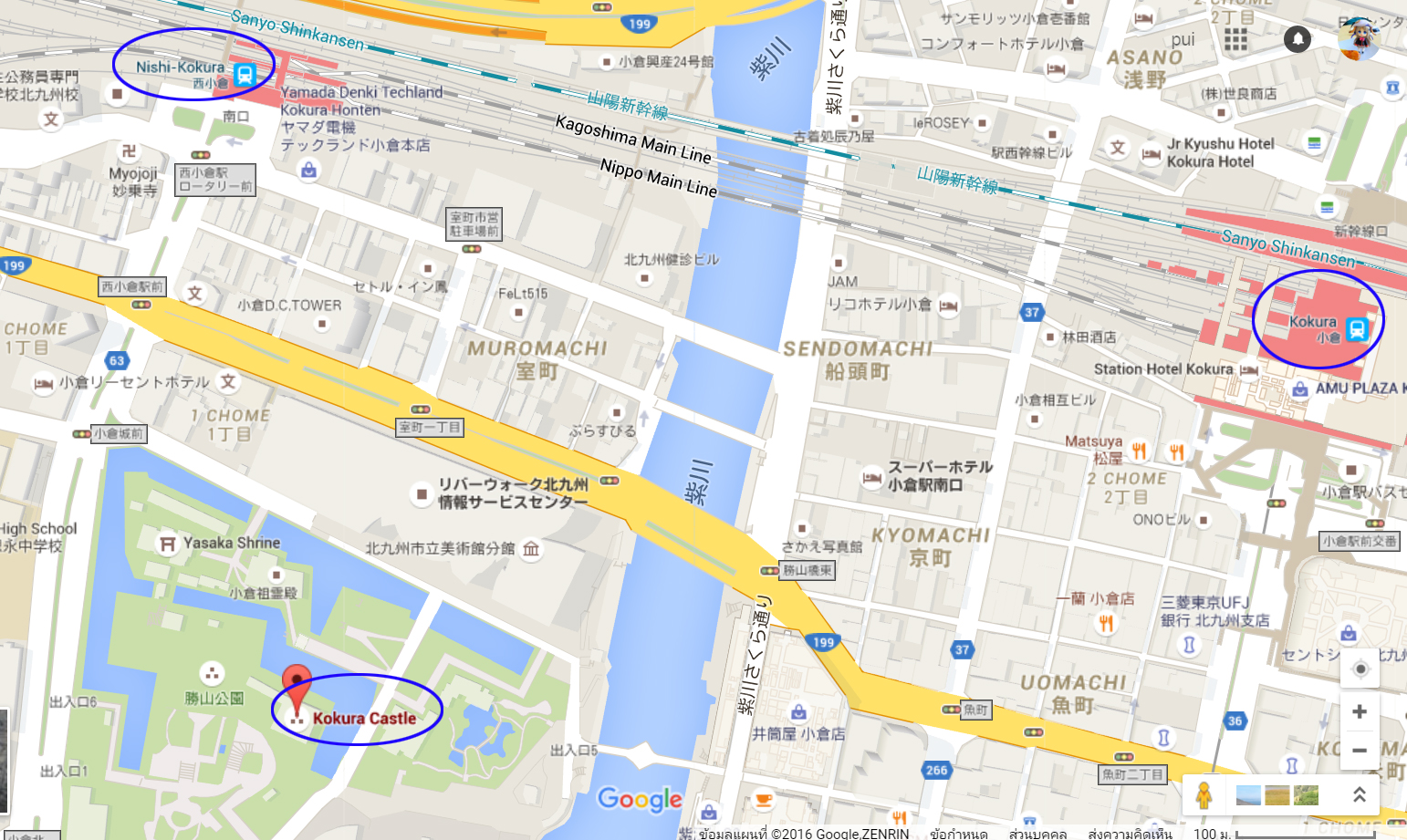 หรือ ลงสถานี Kokura Station แล้วเดินต่อประมาณ 15 นาที