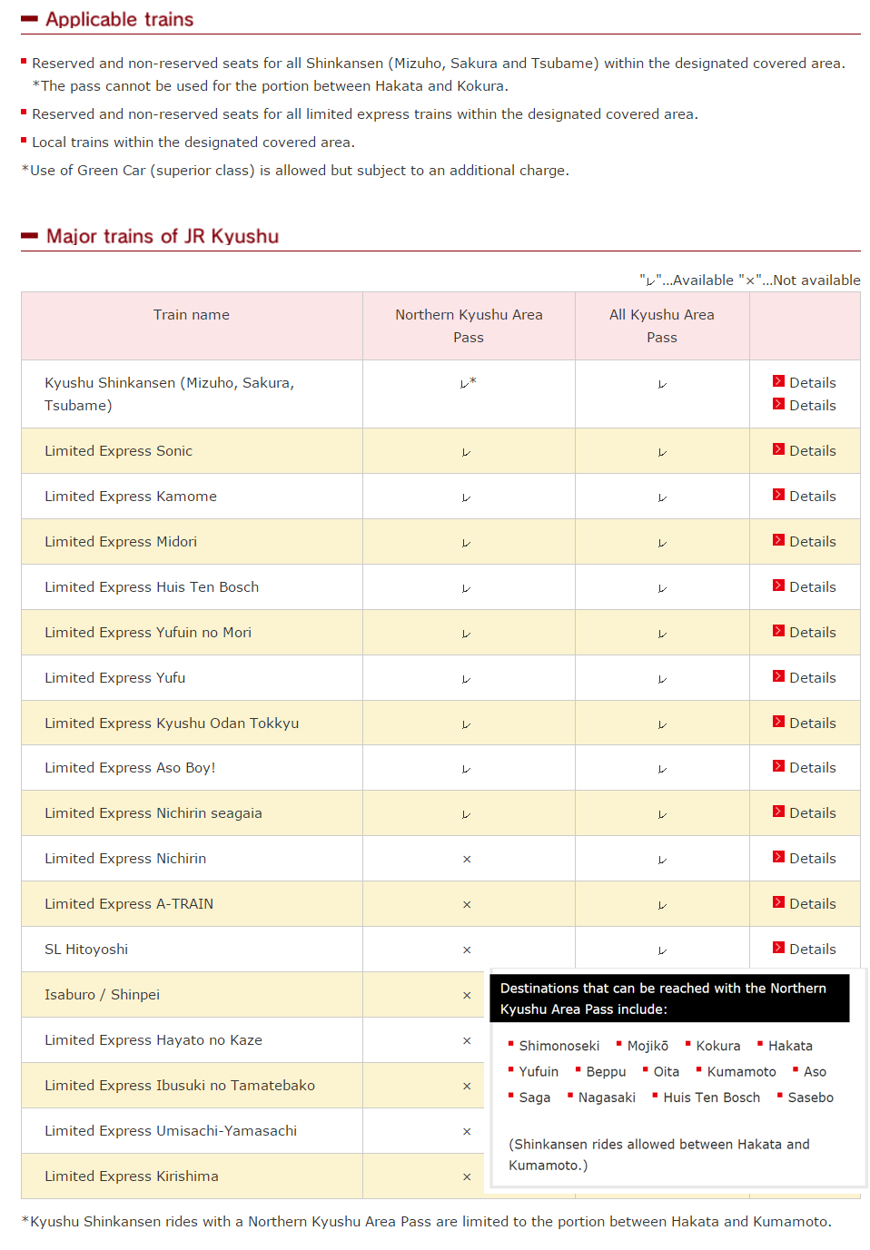 – ตั๋วทั้งสองแบบสามารถใช้ขึ้นรถไฟทั้งแบบ Local และแบบ Limited Express ได้ และใช้ขึ้นรถไฟ Sinkansen แบบ Mizuho, Sakura และ Tsubame ได้