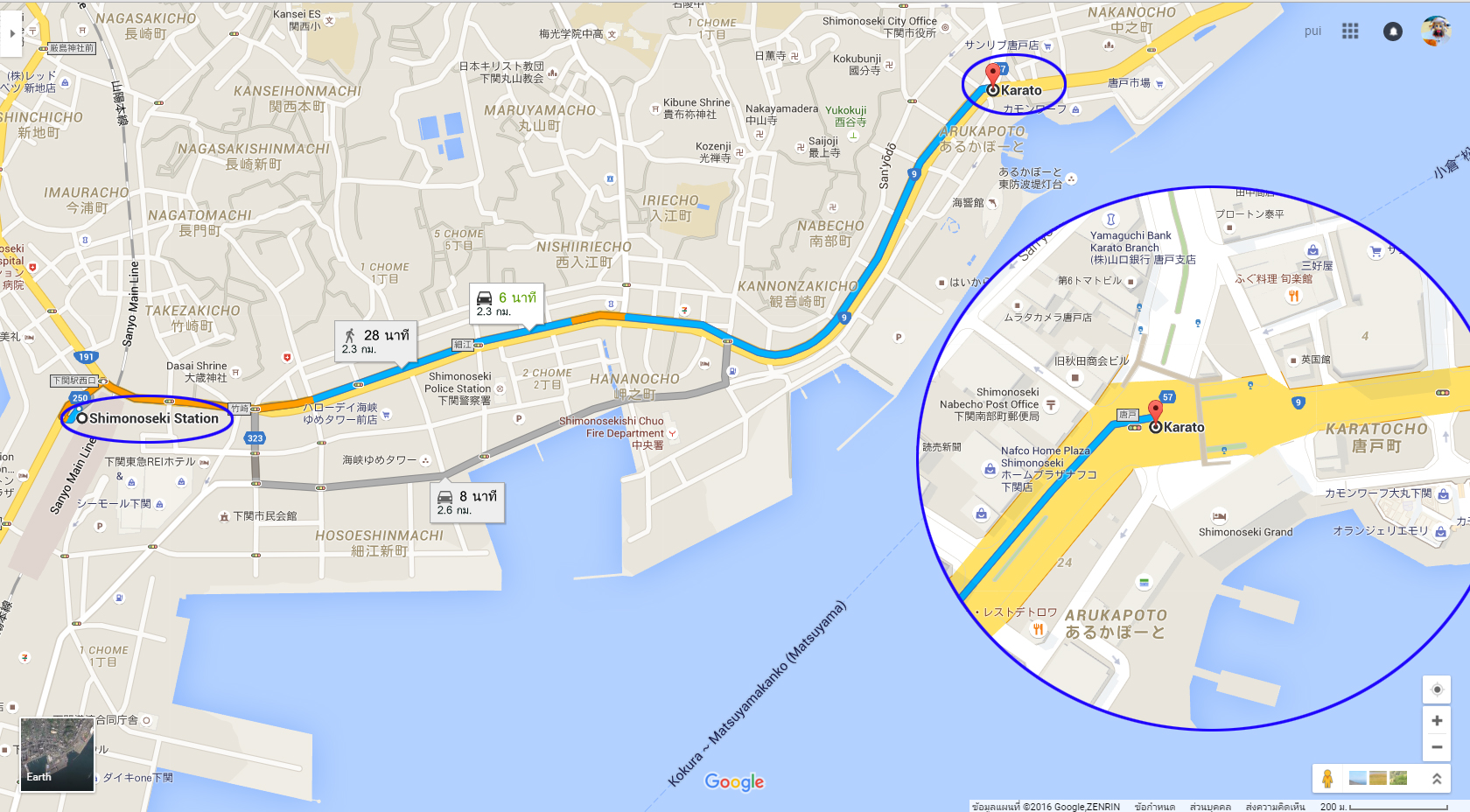 12.30 น. จากสถานี Kokura นั่งรถไฟลอดใต้ทะเล ไปสถานี shimonoseki 15 นาที