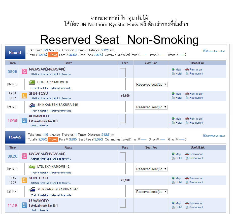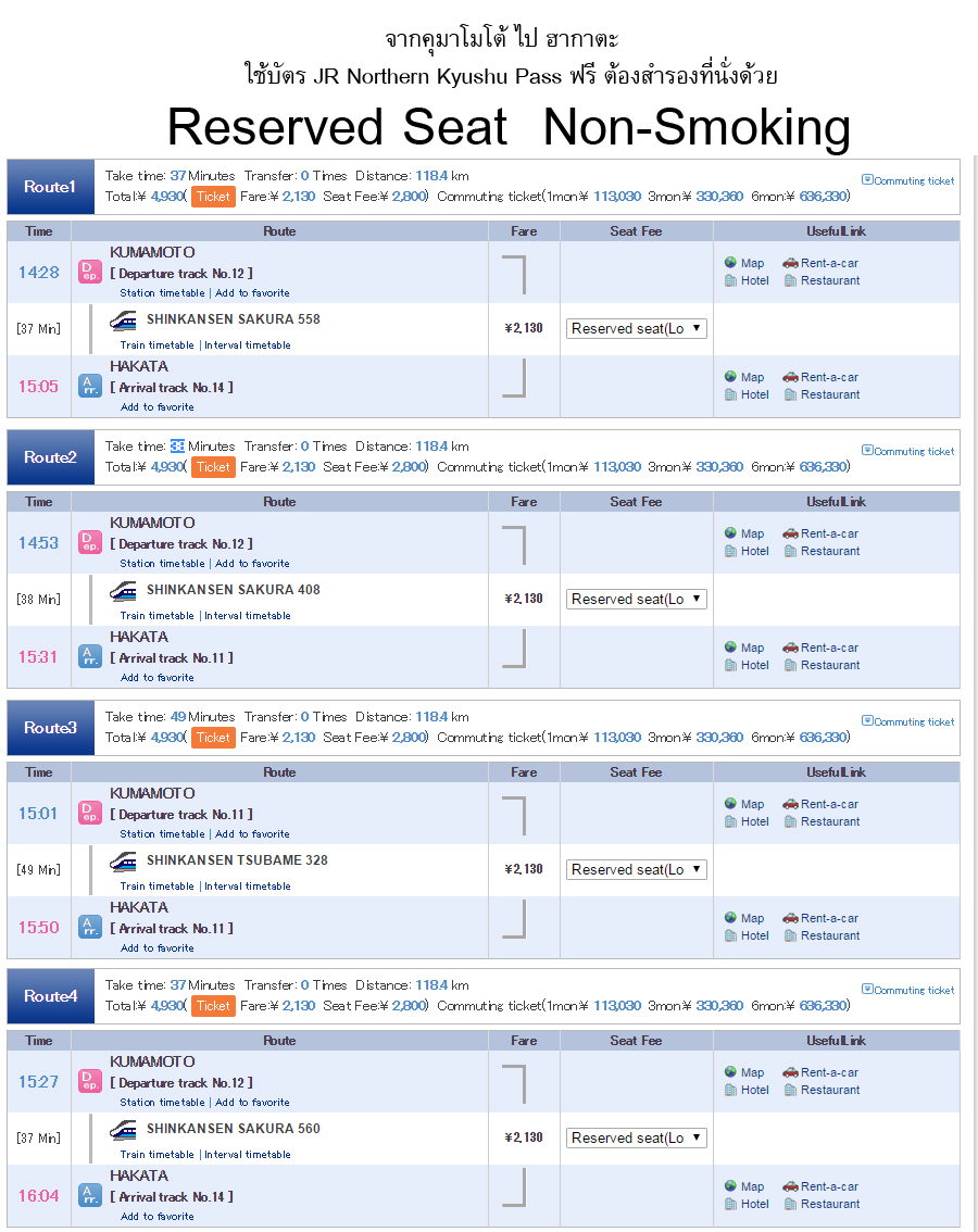 จาก Hakata ไป Kokura ต้องจองที่นั่งด้วย