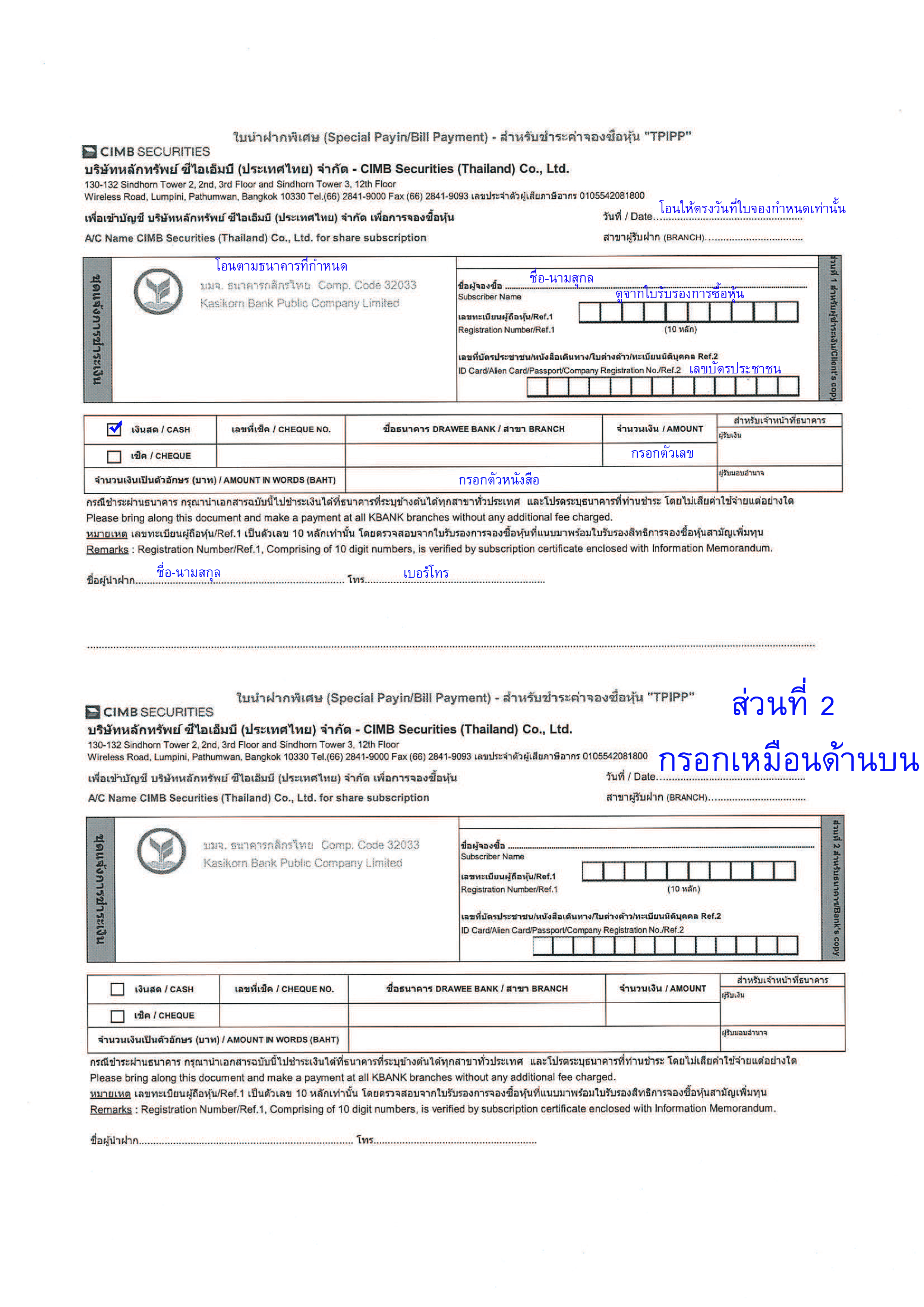 ให้โอนเงินตามวันที่กำหนดเท่านั้น จะมีบอกใน ใบจองซื้อหุ้นสามัญเพิ่มทุน TPIPP