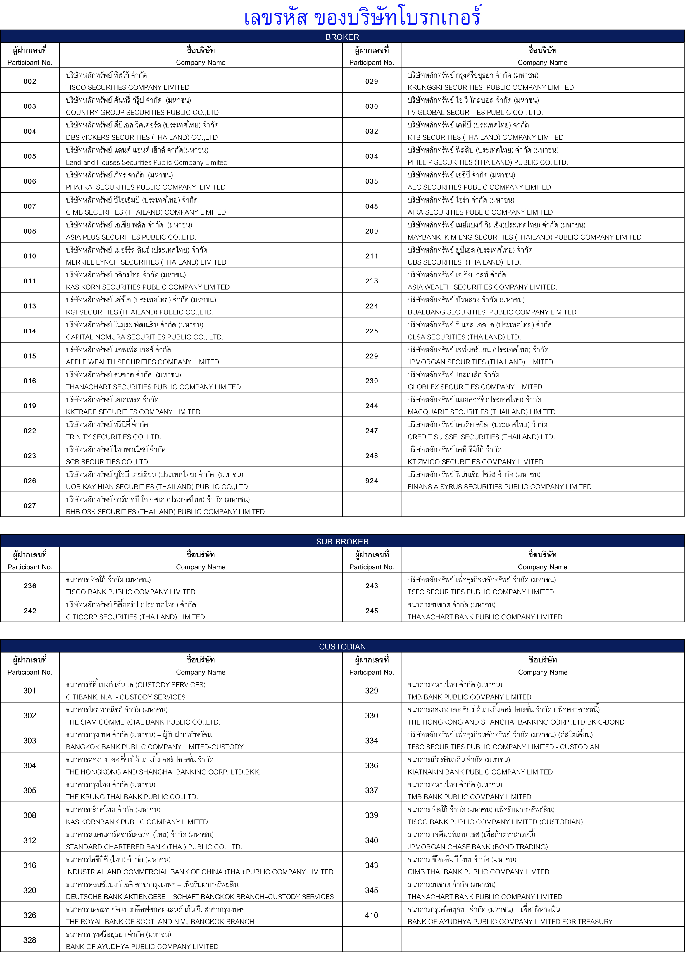 เลขรหัส ของบริษัทโบรกเกอร์ต่าง ๆ