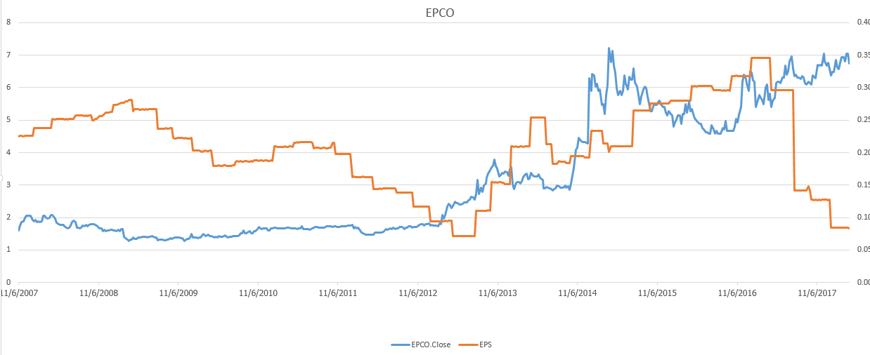 EPCO กราฟ eps เทียบกับ ราคาหุ้น