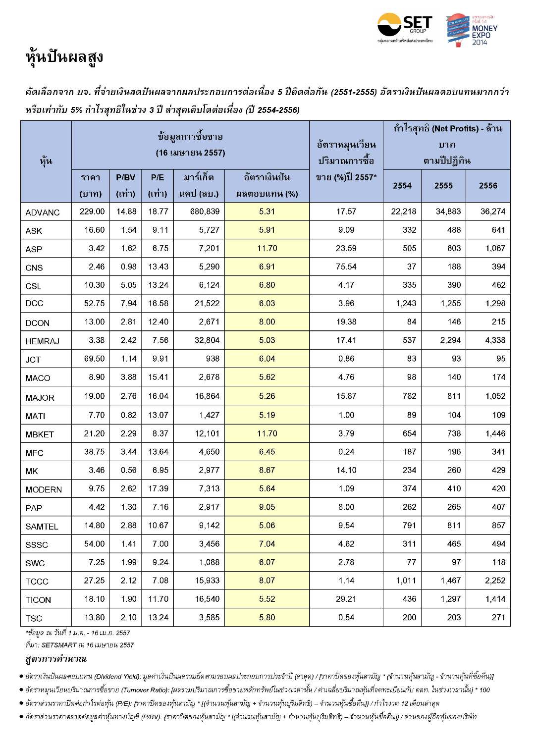 รวมรายชื่อ หุ้นปันผล ปี 53-57 เฉลี่ยมากกว่า 4% ต่อปี